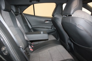 - Sėdynių apmušalai: pilka tekstilė ir juoda dirbtinė oda
