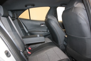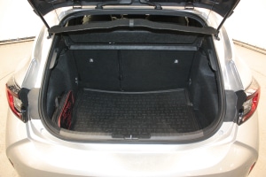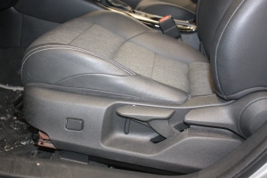 - Sėdynių apmušalai: pilka tekstilė ir juoda dirbtinė oda