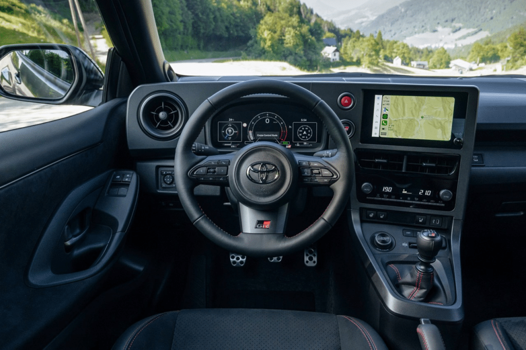 GR Yaris pasižymi į vairuotoją orientuota dizaino filosofija ir nepriekaištinga ergonomika. Bendradarbiaujant su kelių ir ralio sporto profesionalais, sukurta žema sėdėsena, kad vairuotojas jaustųsi glaudžiai susijęs su automobiliu.