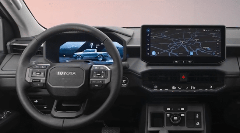 Salono interjeras sukurtas komfortui visą dieną ir visiškai kontrolei užtikrinti. Jame – intuityvi multimedijos sistema, ergonomiška elektroninė važiavimo režimo pasirinkimo funkcija ir daugybė naudingų skyrių daiktams laikyti. Visureigio visų ratų pavaros valdymo elementai sugrupuoti taip, kad būtų lengva pasiekti Hilux bekelės technologijas, įskaitant funkciją Multi-Terrain Select. Penki režimai – akmenų, smėlio, purvo, žemių ir gūbrių – optimizuoja veikimą įvairiomis sąlygomis. Hilux Electric automatiškai prisitaiko ir užtikrina lengvą važiavimą bekelėje.