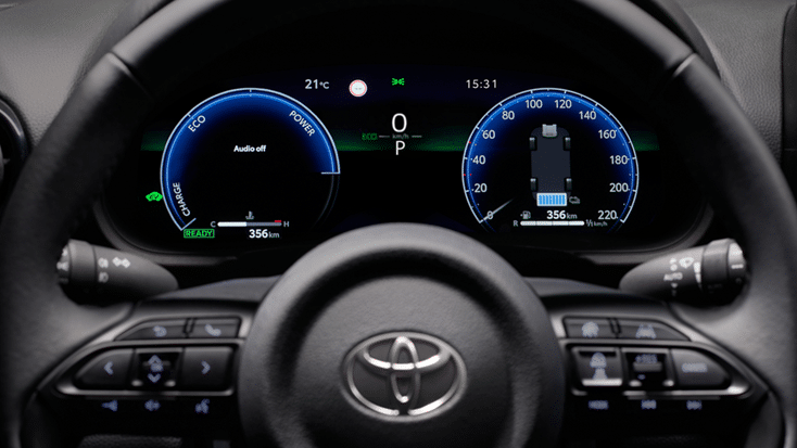 Yaris, pasižymintis komfortiška vairavimo padėtimi ir patogia skaitmenine prietaisų sistema, pasirengęs viskam. Sukonfigūruokite 12,3 colio jungtinį ekraną, kaip norite, pasirinkdami vieną iš keturių išdėstymų: išmanųjį, patvarųjį, įprastą arba sportinį.